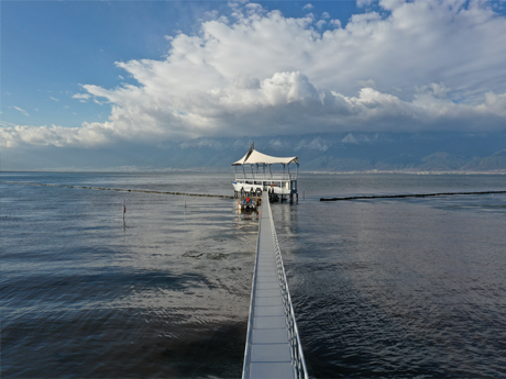 采用高效可調式渦井取藻、藍藻囊團破壁、一體化二級強化氣浮等核心技術,岸上站點藻水分離系統(tǒng)集成了藍藻打撈、脫氣沉降、氣浮分離、脫水等多個環(huán)節(jié)的技術和設備,形成了可規(guī)模化和工廠化處理藍藻的基站。適用于藍藻水華長期規(guī)律性、大范圍聚集區(qū)域的常態(tài)化應急處置。